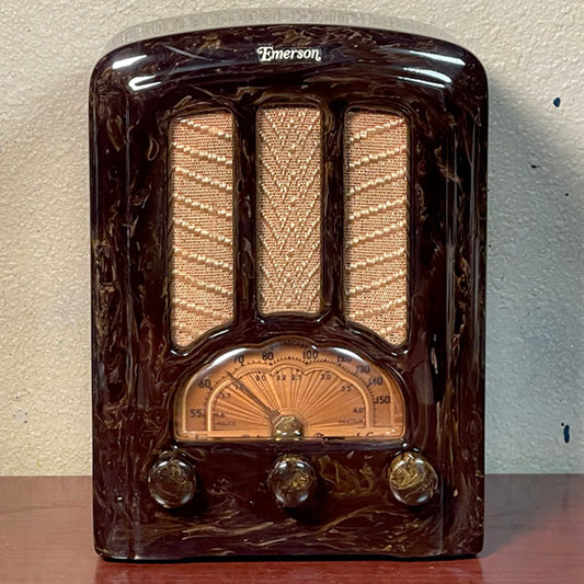 EMERSON AU190 'Tombstone' Catalin Radio- Brown with Cream Swirls