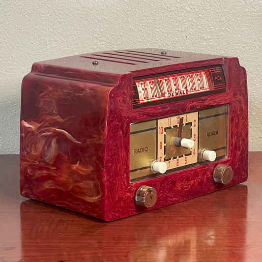 DeWald B-512 Catalin Radio/Clock- Red Swirled *Pristine Condition*
